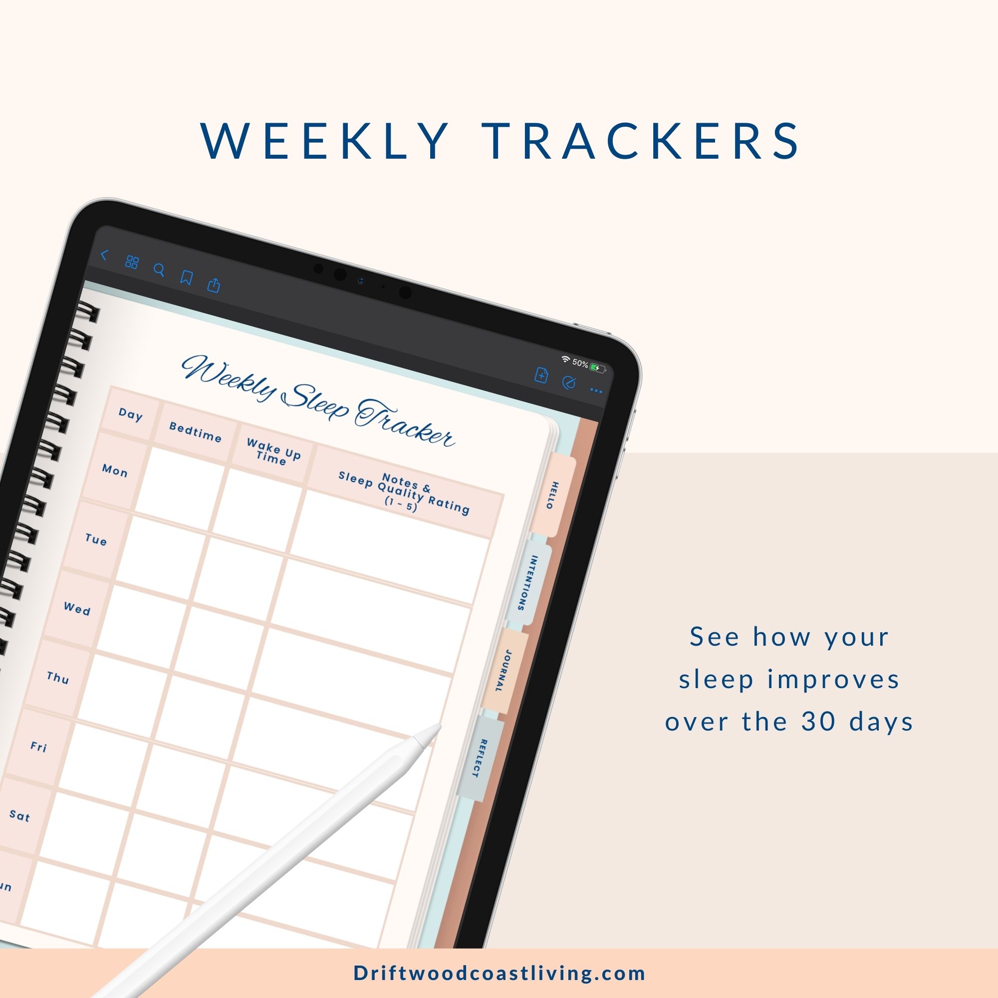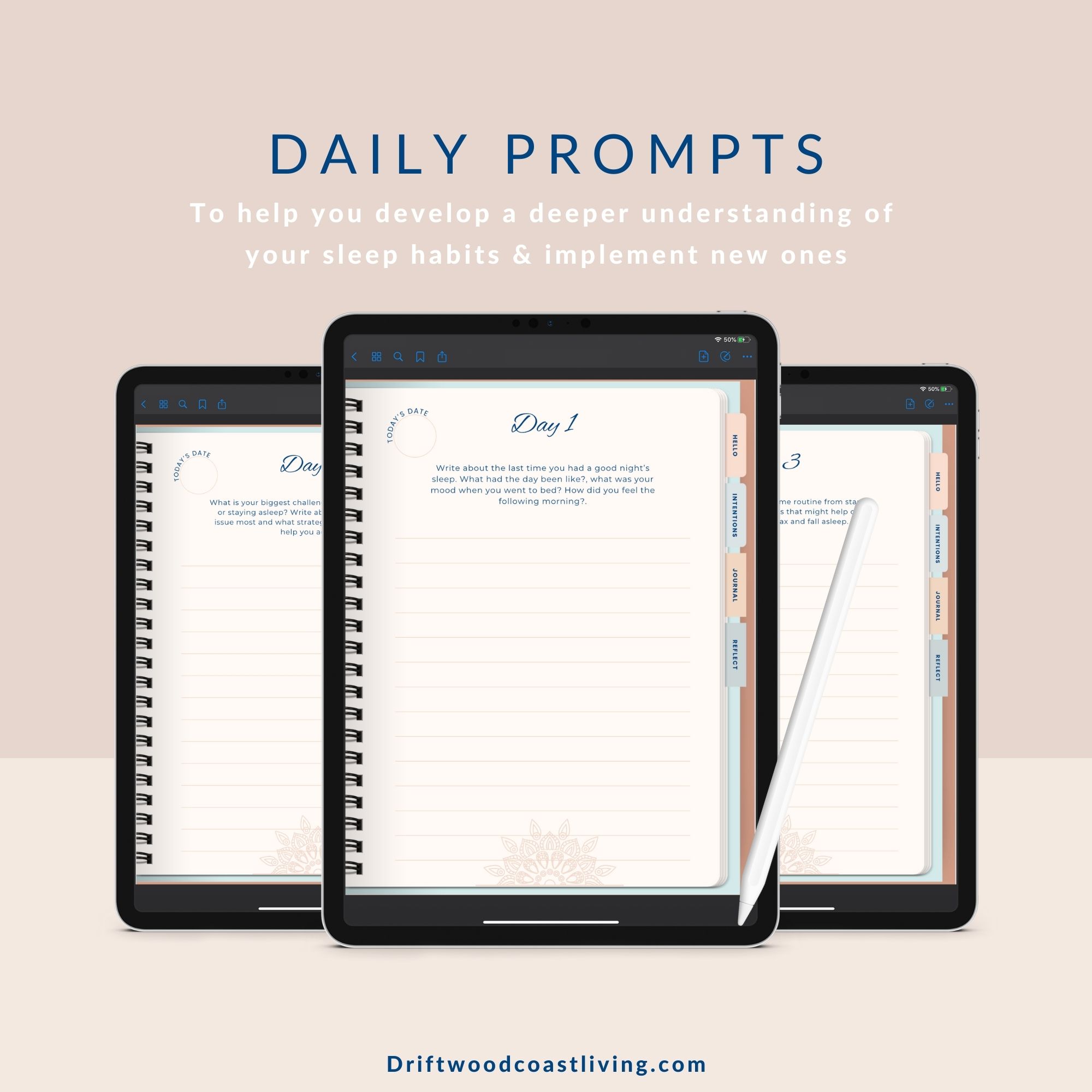 Unlock the restful nights you deserve with this beautifully designed sleep journal. Begin by setting clear intentions, track your progress with weekly sleep logs, and reflect on daily prompts crafted to uncover patterns and inspire lasting change. With soothing visuals and guided insights, this journal helps you build better habits and embrace restorative sleep. Start your journey to transformative rest today!