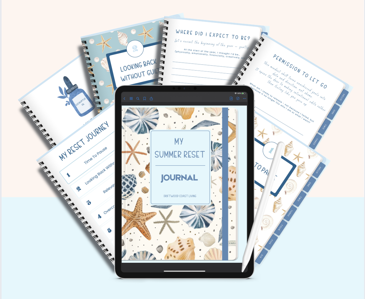 The Summer Reset Journal is a practical, step-by-step tool that walks you through:
