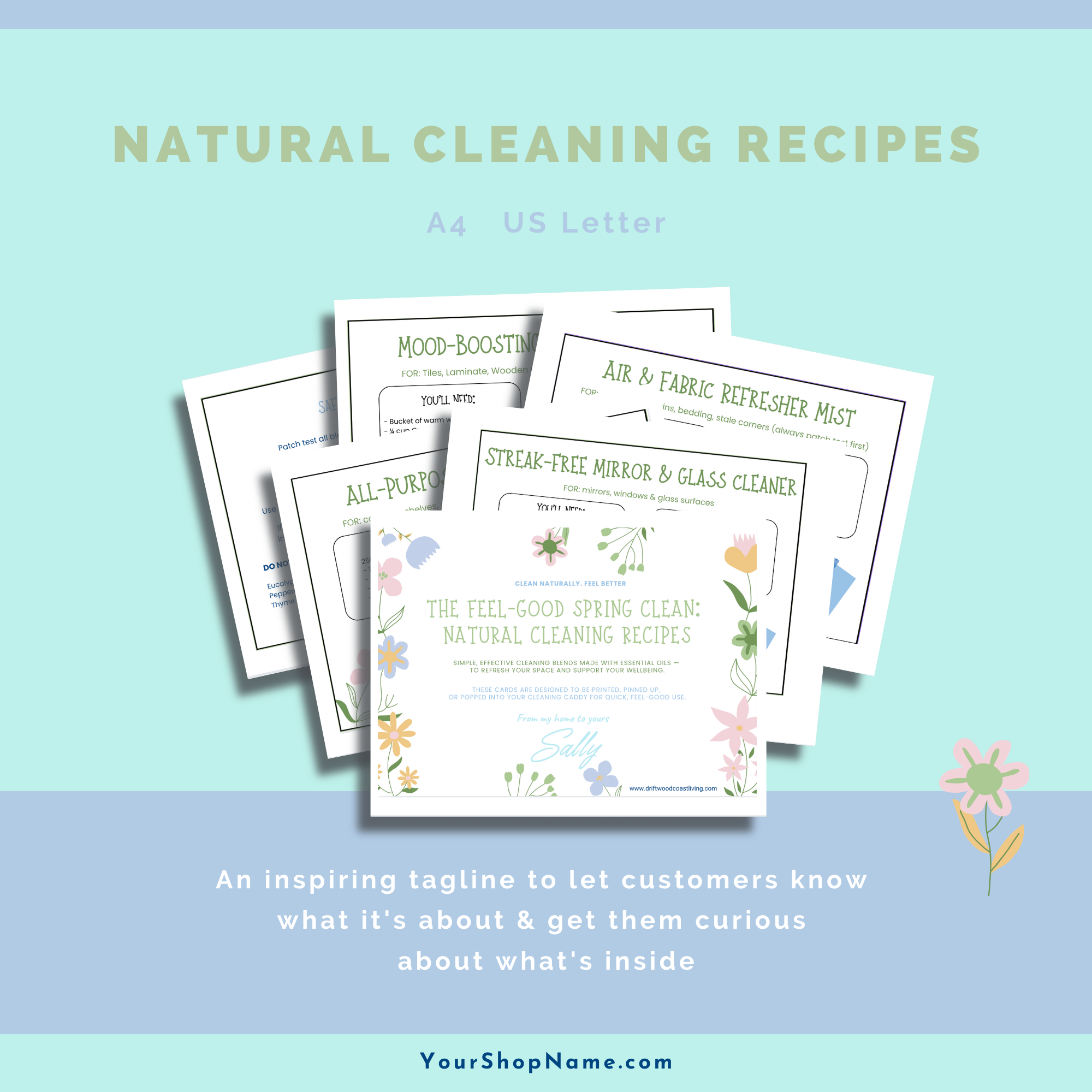This printable digital starter pack is your practical, beautiful guide to cleaning with essential oils — no overwhelm, no harsh chemicals, no guesswork.