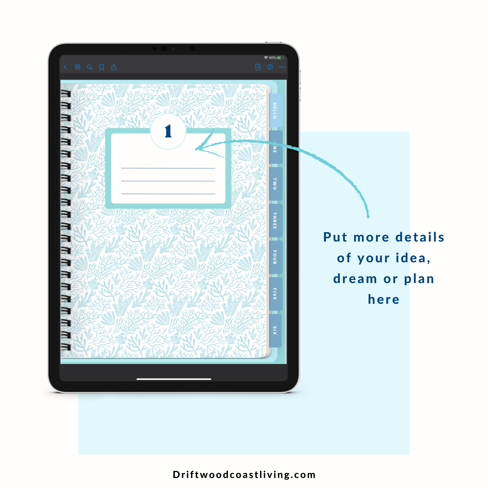 There's lined & blank pages in each section - the perfect place to write about your ideas, dreams & plans as well as paste photos & images.