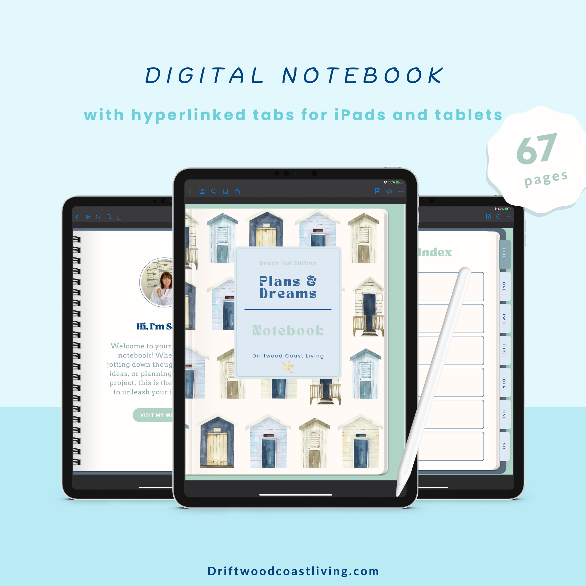 A beautifully designed, beach themed digital notebook. Six sections to record your individual dreams, ideas & plans. 10 pages per section with room to write, draw & add images. Instant download. For use with Goodnotes or Noteability apps.