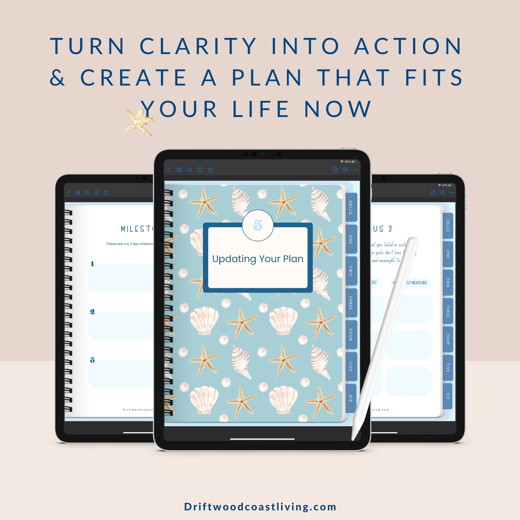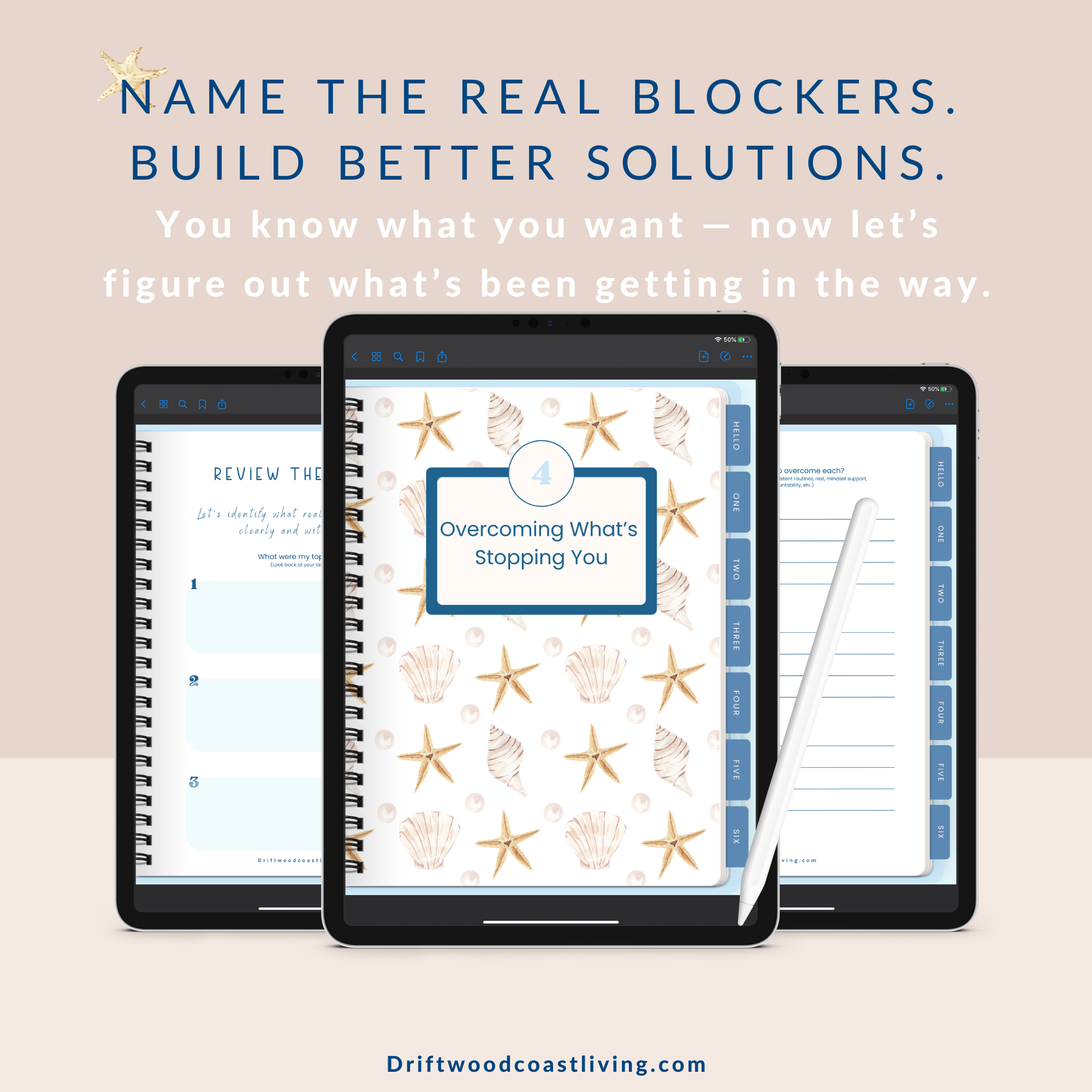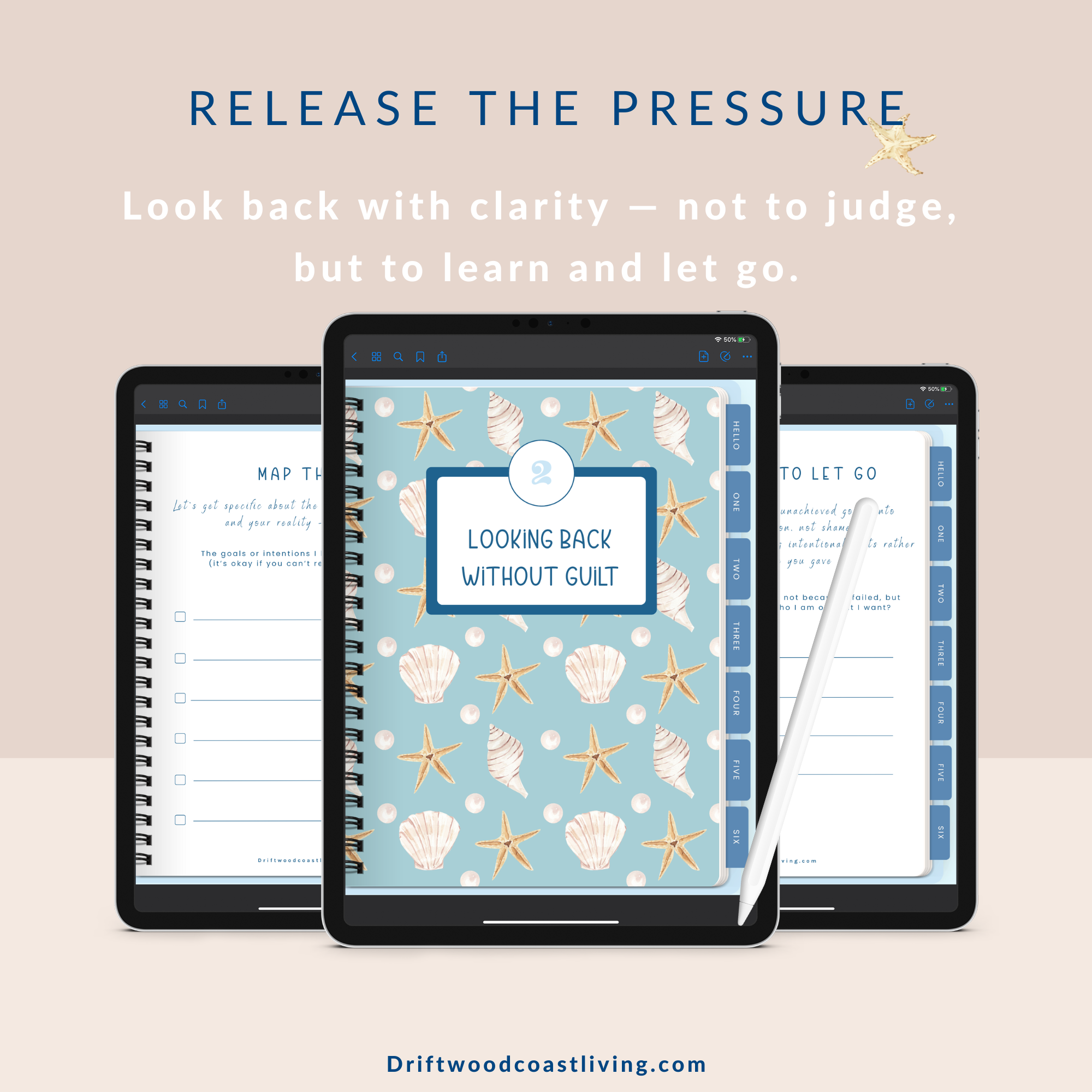Whether you’re sitting in the sun with a cold drink or taking ten quiet minutes before bed, this journal will guide you through a step-by-step process to: